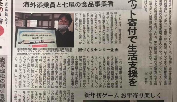 先週になりますが、今回の海外添乗員と地方の農業生産者を助けるクラウドファンディングが中日新聞の記事で取り上げれられました。